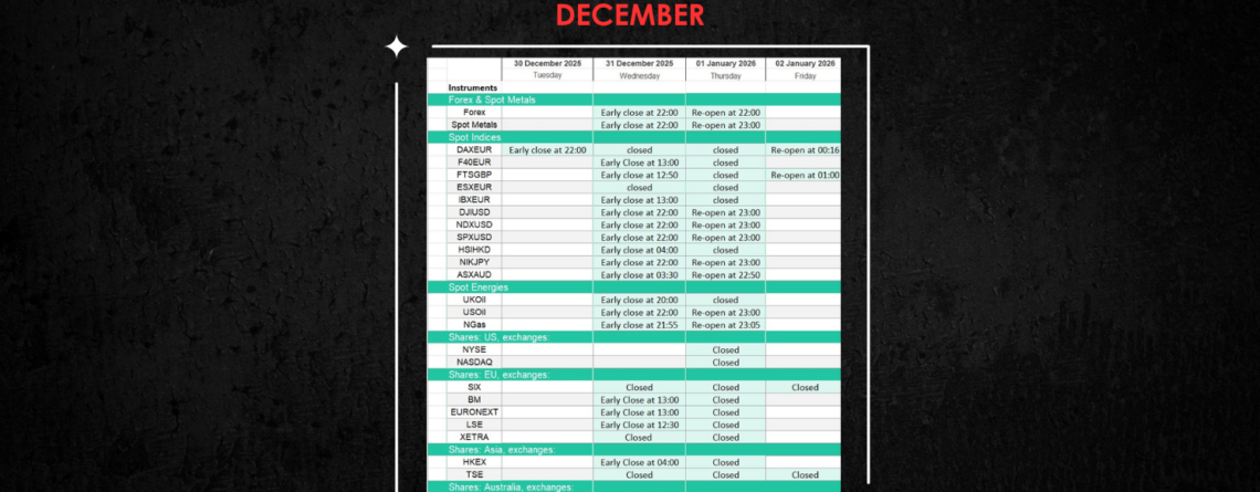 Kindly find the holidays trading schedule for December on Christmas season. Be acknowledged that the time is based on GMT+0.... read more
